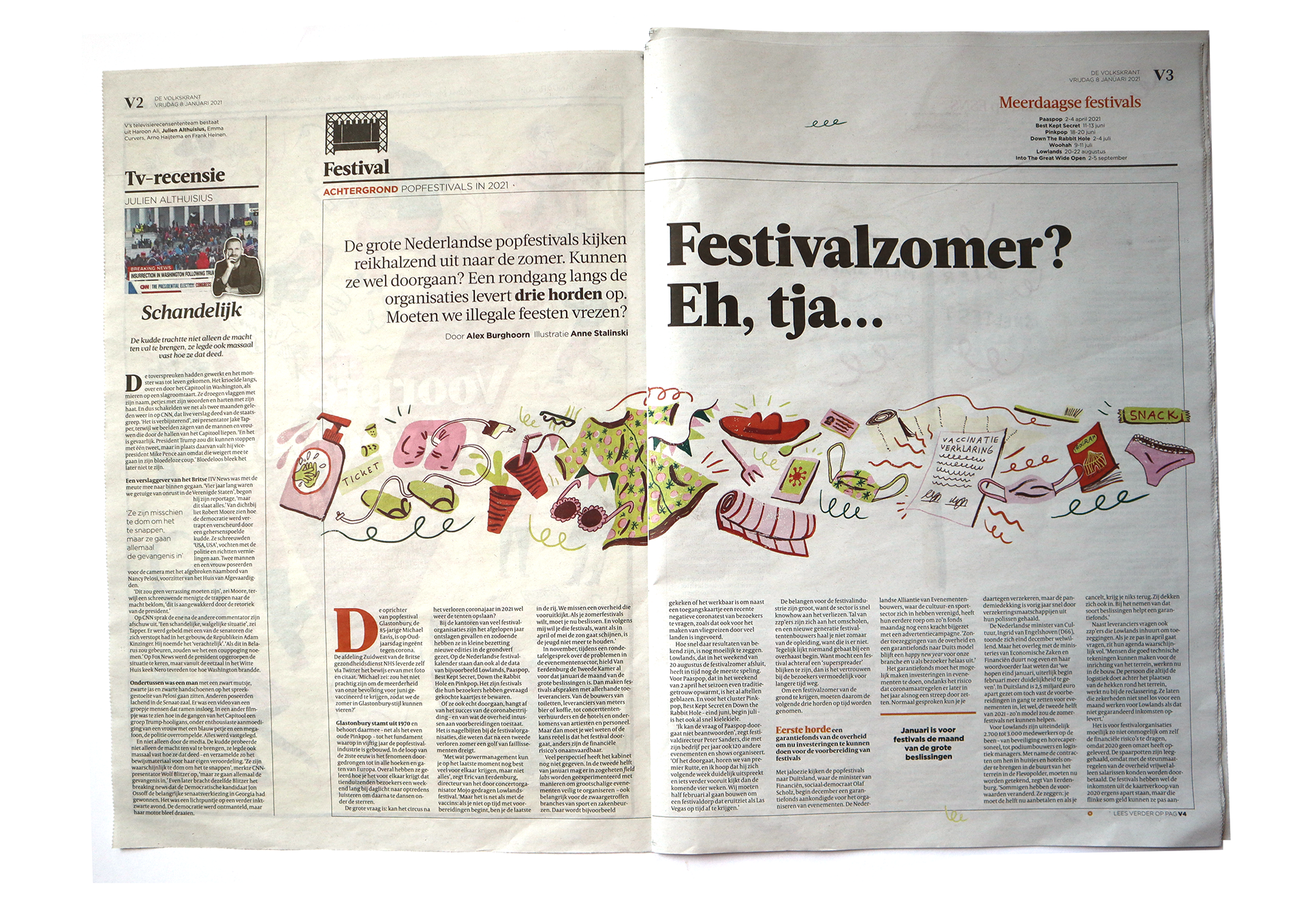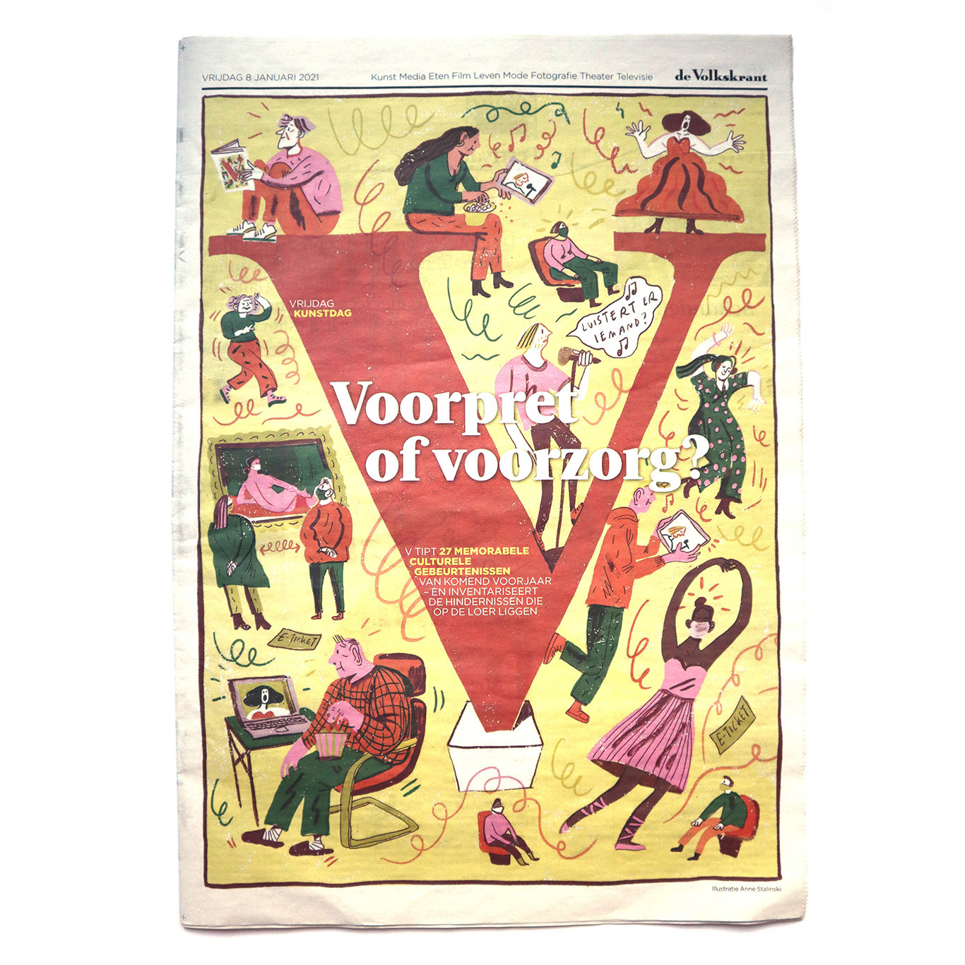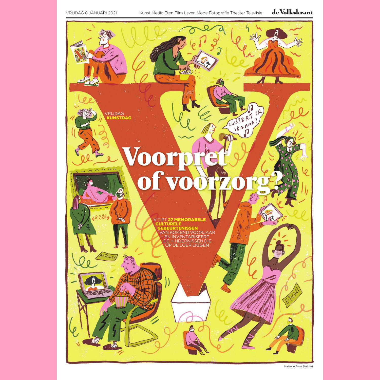 Illustrations for the Cultural Supplement of De Volkskrant, about cultural activities in Covid-times