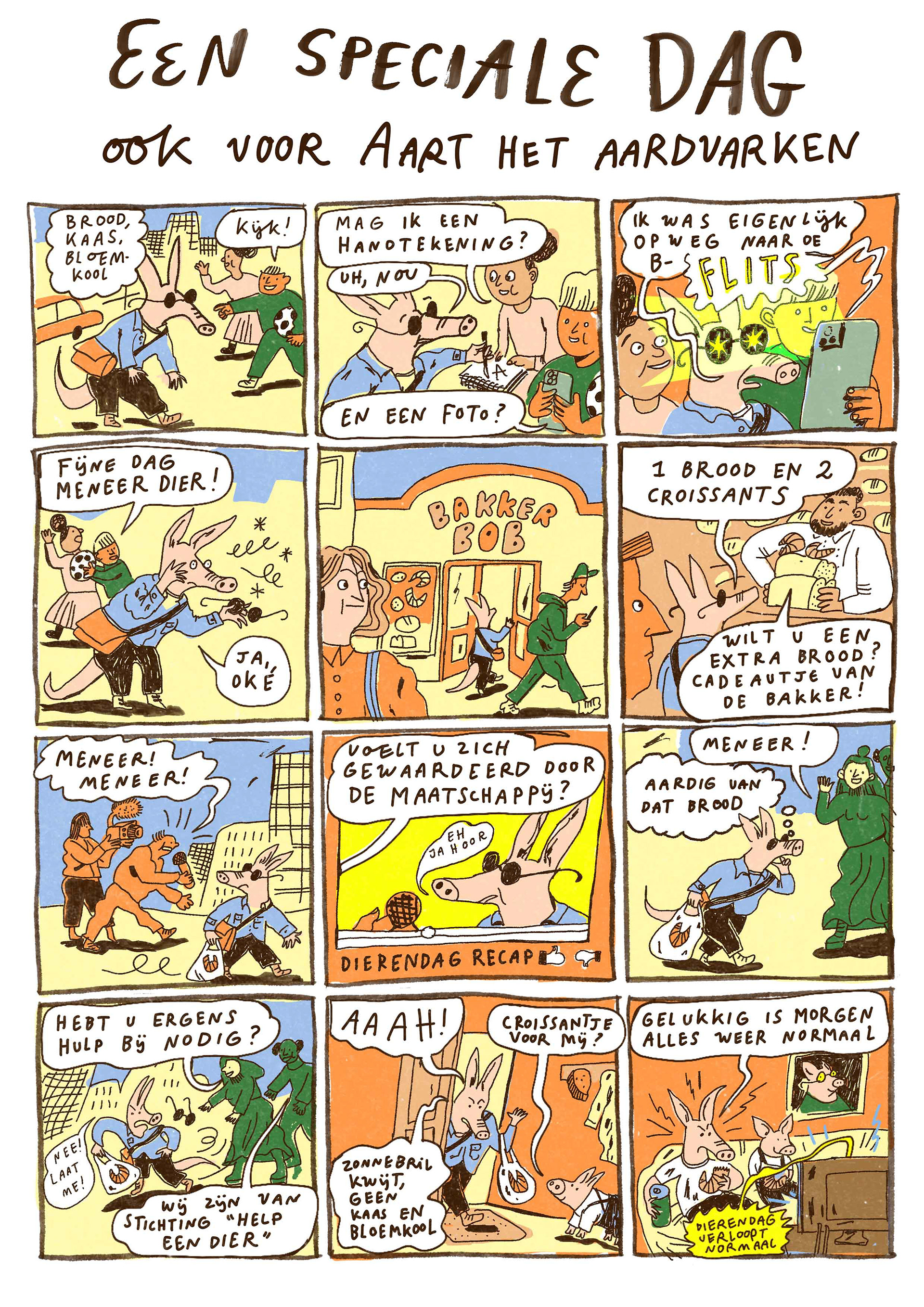 Vroeger lazen we thuis de VPRO-gids, en ik knipte de plaatjes graag uit. En nu maakte ik een strip voor ze, ter ere van dierendag