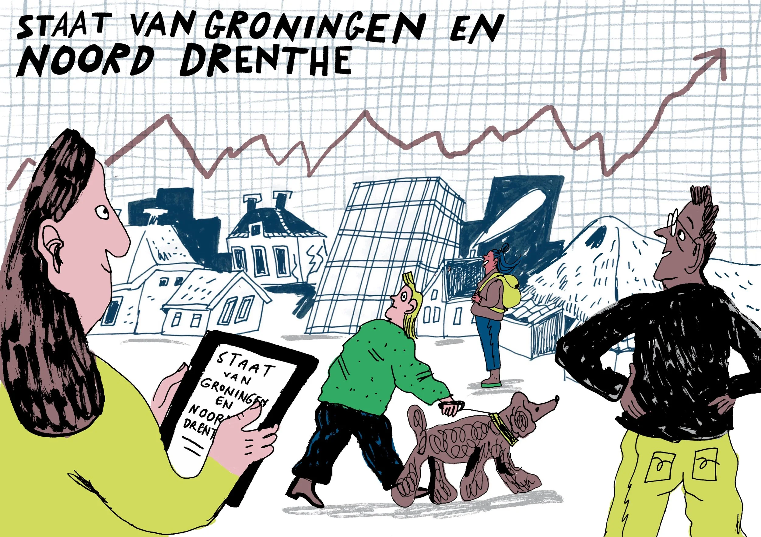 “De Staat van Groningen” is een rapport over hoe het er voor staat met de aardbevings- problematiek in deze regio (over het algemeen: kon beter). Ik voorzag het rapport van illustraties, tekende bij enkele klankbordgroepen, èn was aanwezig op de presentatie om tekeningen te maken die cadeau werden gedaan aan wethouders en sprekers.