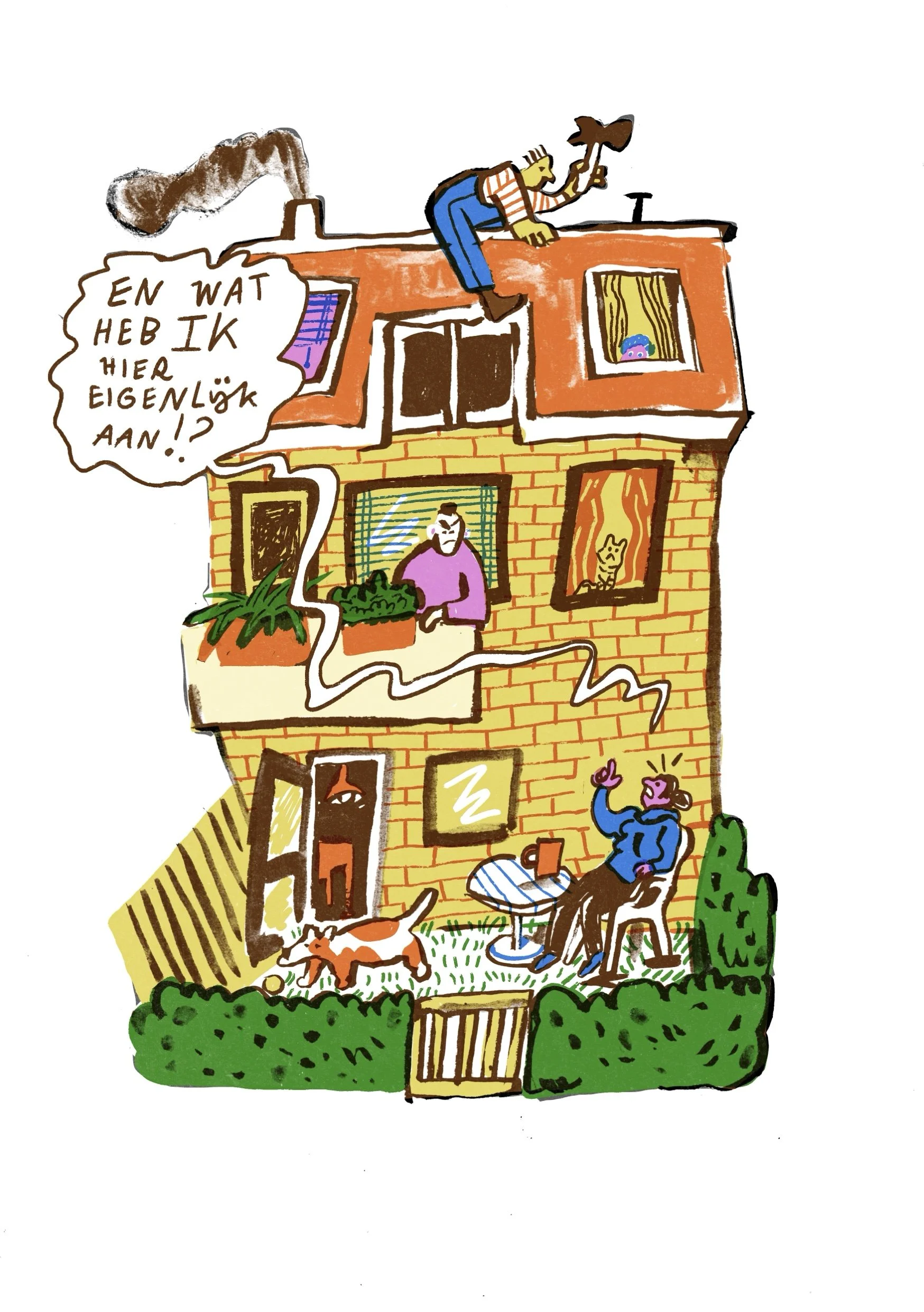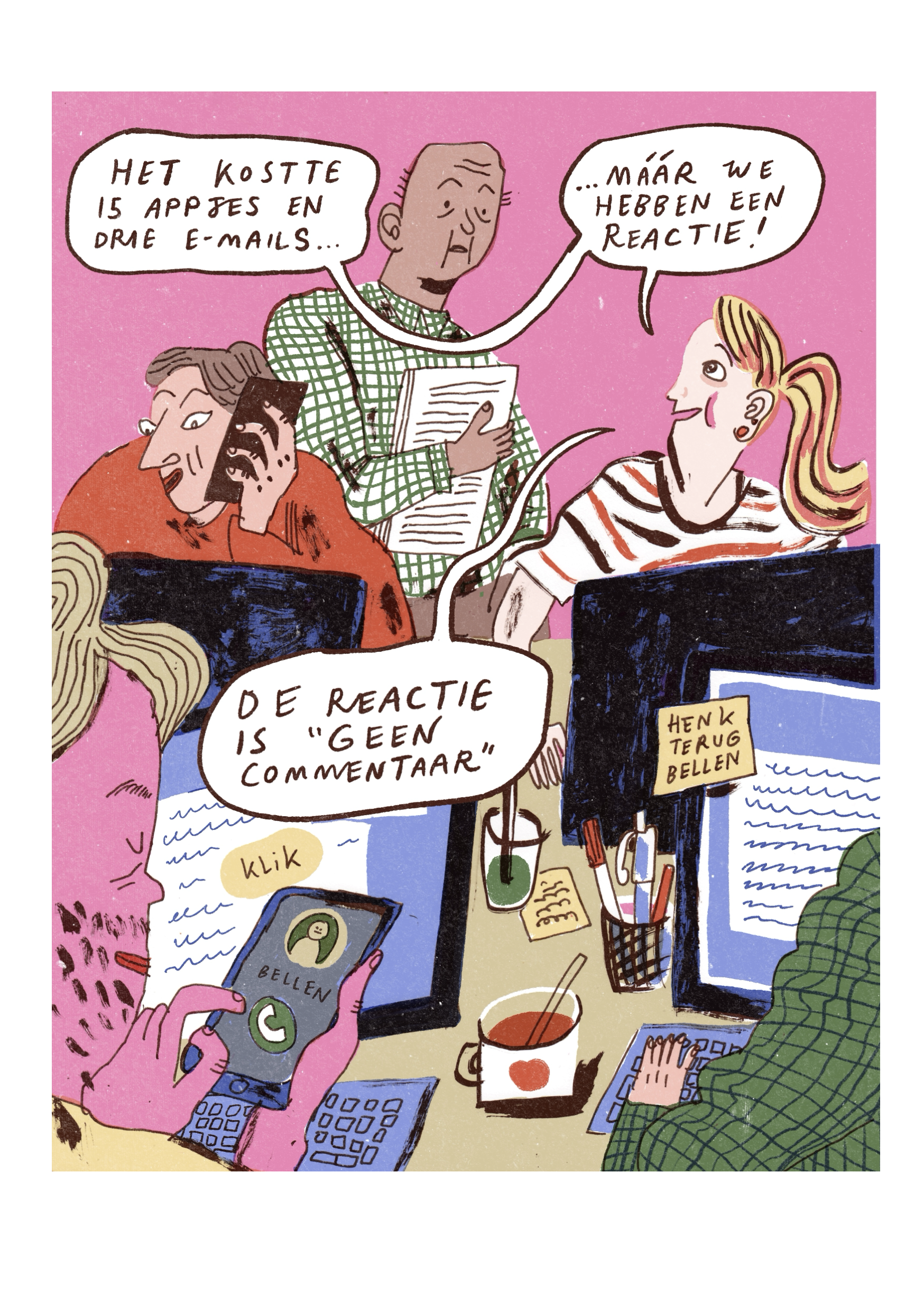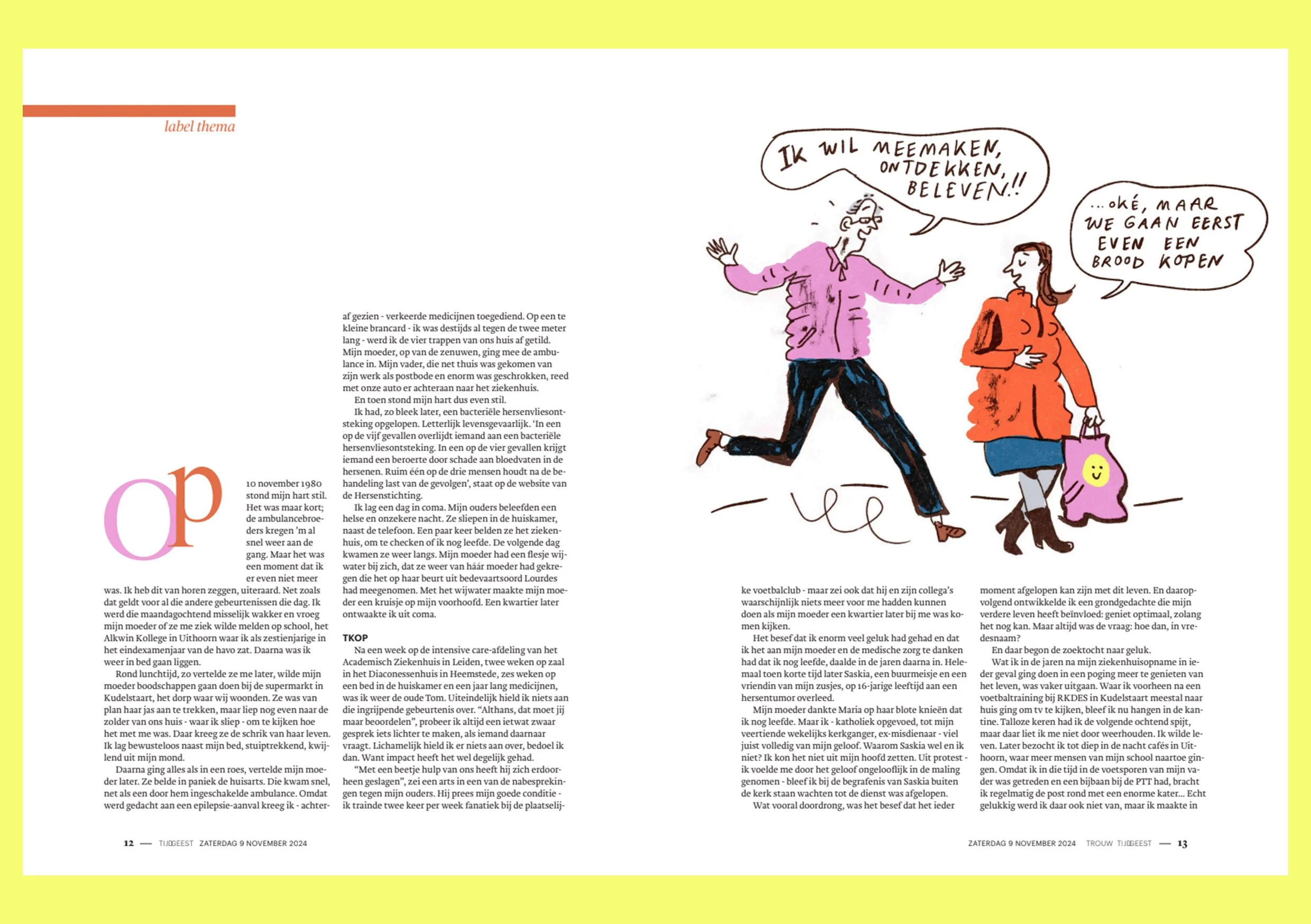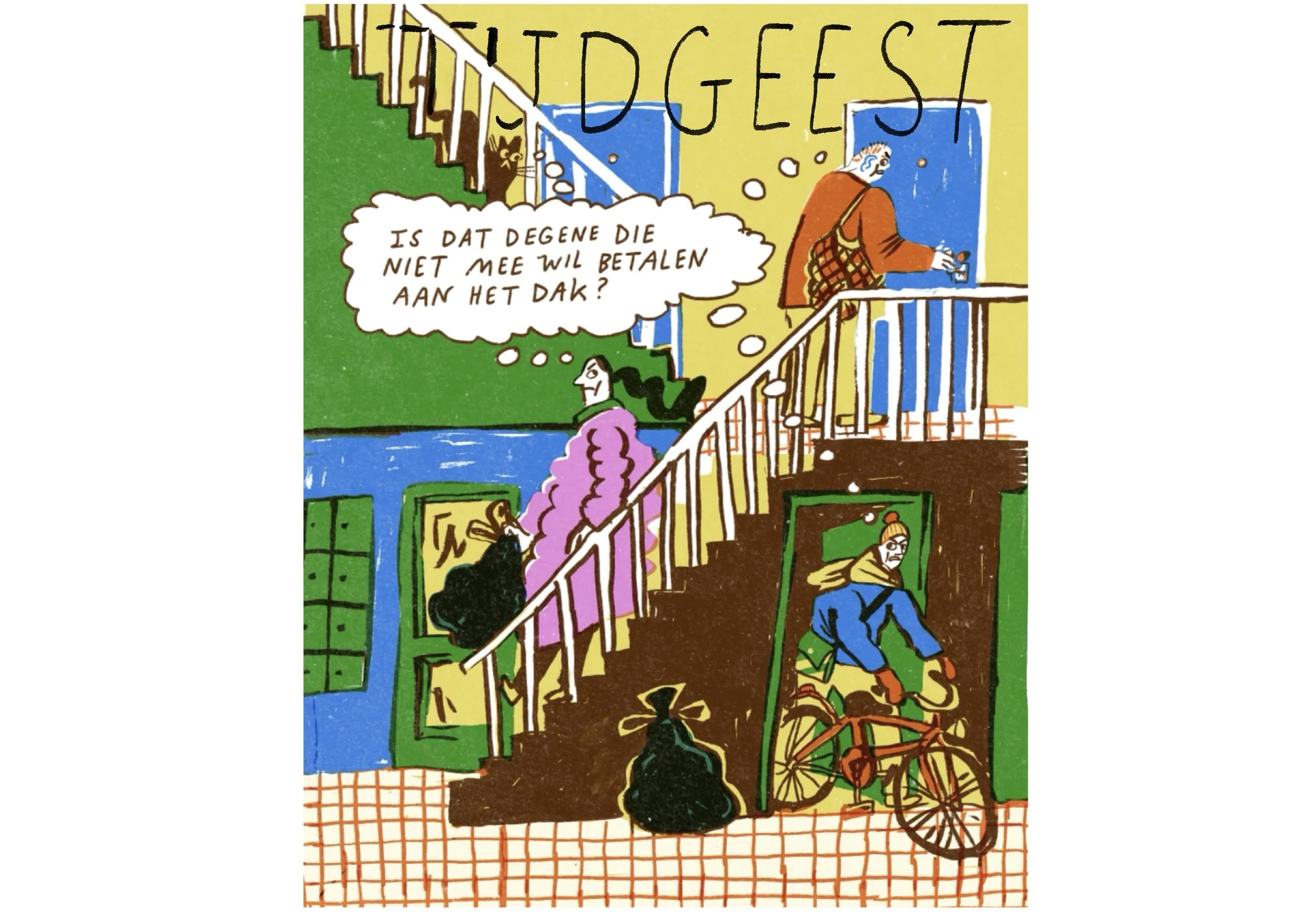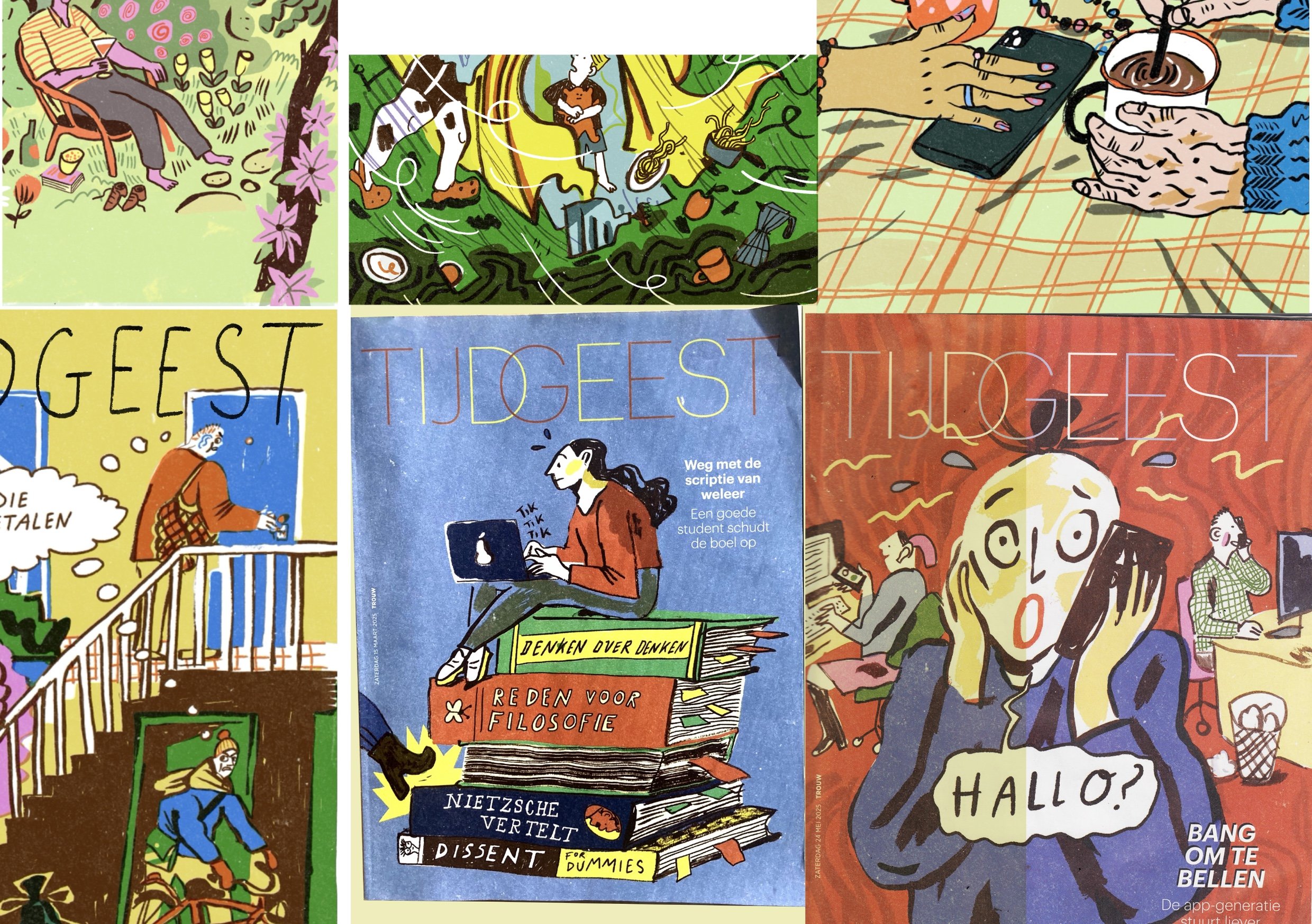 Regelmatig vraagt de Trouw me om een verhaal in Tijdgeest te illustreren. Vaak zijn dat verhalen waarin klein menselijk leed wordt gekoppeld aan grotere maatschappelijke thema’s.